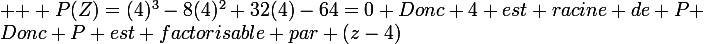 a/Montrer que 4 est une racine de P. Que peut-on en déduire sur la factorisation de P,