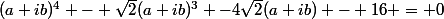 ^4 - \sqrt{2}(a+ib)^3 -4\sqrt{2}(a+ib) - 16 = 0)