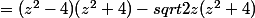 =(z^2-4)(z^2+4)-sqrt{2}z(z^2+4))