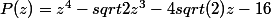P(z)=z^4-V(2)z^3-4V(2)z-16