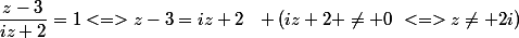 la question est la suivante : résoudre dans C l'équation (z-3)/(iz+2) = 1