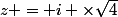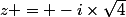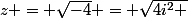 z = V (-4 ) = V (-1)*4)= v (i²) *4 = 2 i