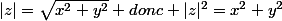 Qu'elle est le module de z=a+bi en fontion de a et de b ? Et donc |z|²