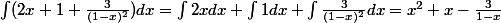 ^2})dx=\int2xdx+\int1dx+\int\frac{3}{(1-x)^2}dx=x^2+x-\frac{3}{1-x})