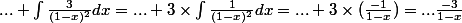 ^2}dx=...+3\times\int\frac{1}{(1-x)^2}dx=...+3\times(\frac{-1}{1-x})=...\frac{-3}{1-x})