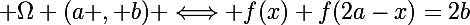 Pour montrer que le graphe d'une fonction est symétrique par rapport à une droite d'équation x=k, il faut montrer que la valeur de la fonction au point symétrique de x par rapport à k est égale à l'image de la fonction au point x, et ceci pour tout x. Or, deux points symétriques sur un axe par rapport à un troisième sont tels que la moyenne de leurs abscisses est égale à l'abscisse du troisième donc l'abscisse du symétrique de x par rapport à k est x' tel que :