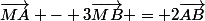 A et B son deux points donnés . On cherche un point M tel que ( imaginé qu'il y'a une fléche sur les lettres des vecteurs car je ne sais pas comment les faire merci ) MA - 3MB = 2AB.