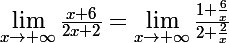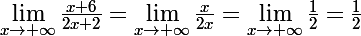 sinon (x+6)/(2x+2)~x/(2x) en l'infini~1/2