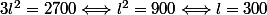 Ok merci et une fois que j'ai fais racine de 3l je laisse écris V3l=2700 et c'est finit?