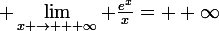 Ben c'est tout simple, quelle forme indéterminée du cours connaîs-tu en +inf avec e^x ?