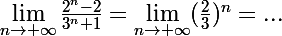 soit lim ([2^n]-2)/([3^n]+1) = lim 2 / V([3^n]+1) - V[(2)/([3^n]+1)]