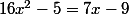 e^((4x)^2 - 5) = e^(7x - 9)