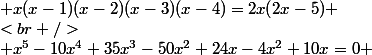 (x-2)(x-3)(x-4)=2x(2x-5) \\<br />\\ x^5-10x^4+35x^3-50x^2+24x-4x^2+10x=0 \\)
