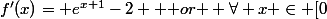 = e^{x+1}-2 \mbox { or } \forall x \in [0;+\infty[ f'(x)> 0 \mbox { f est strictement croissante sur cet intervalle, de plus f(0) > 0})