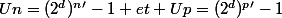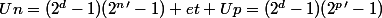 ou d est le pgcd de n;p et {n=n'*d;p=p'*d} si tu montres que si deux entiers sont premiers entres eux alors leurs images par 2^k-1 le sont aussi tu peux conclure que le pgcd de Un et Up = 2^d-1 soit bel et bien