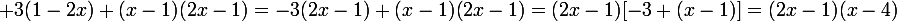 3(1-2x)+(x-1)(2x-1)=-3(2x-1)+(x-1)(2x-1)=(2x-1)[-3+(x-1)]=(2x-1)(x-4)