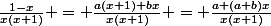 rodophe44 a écrit:Comment tu trouves qu'on peut décomposer (1-x)/(x^2 + x) en a/x + b/(x+1)