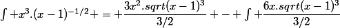 ^{-1/2} = \dfrac{3x^2.sqrt{(x-1)^3}}{3/2} - \int \dfrac{6x.sqrt{(x-1)^3}}{3/2})