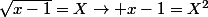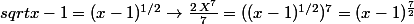 ^{1/2}\to{{2\,X^7}\over{7}}=((x-1)^{1/2})^7=(x-1)^{\frac{7}{2})