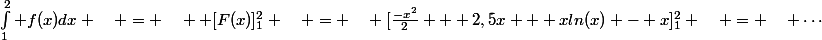 dx \quad = \quad [F(x)]_1^2 \quad = \quad [\frac{-x^2}{2} + 2,5x + xln(x) - x]_1^2 \quad = \quad \cdots)