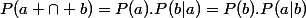 Si a et b sont deux événements indépendants tu as P(a|b)=P(a).