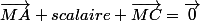 1ere méthode: barycentreChacun des deux vecteurs s'exprime par une somme de vecteurs de même origine M. L'idée est de remplacer chacun par un seul vecteur d'origine M en utilisant le barycentre