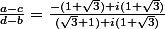 Z=[(-1-(racine carrée(3)))+i((racine carrée(3))+1)][(-1-(racine carrée(3)))-i((racine carrée(3))+1)]/[(-1+(racine carrée(3)))+i((racine carrée(3))+1)][(-1-(racine carrée(3)))-i((racine carrée(3))+1)]