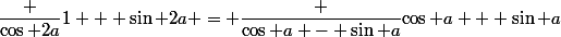 (cos2a)/(1+sin2a) = (1-tga)/(1+tga)