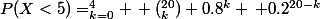 =\Bigsum_{k=0}^{4} \, (_{k}^{20}) 0.8^k \, 0.2^{20-k})