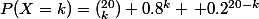 =(_{k}^{20}) 0.8^k \, 0.2^{20-k})