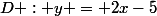 d'abscisse n appartenant à l'axe des abscisses, à la droite D : y = 2x-5 et