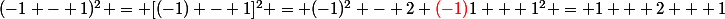 (-1-1)² = (-1)² - 2x1x1 + 1² = 1-2+1 = -1+1 = 0