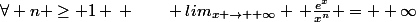 à savoir que l'exponentielle exp(x) croit plus vite que x^n donc le rapport tend vers 0
