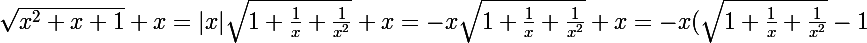 }{|x|\sqrt{1+\frac{1}{x}+\frac{1}{x^2}}-x}=\frac{x(1+\frac{1}{x})}{-x(\sqrt{1+\frac{1}{x}+\frac{1}{x^2}}+1)})