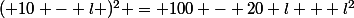 L² = ( 10 - l ) ² = 100 x 20 l - l²