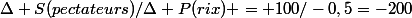 S = -200 P + 2100 (2100 pour avoir 500 spectateurs à 8 )