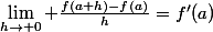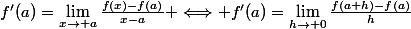 =\lim_{x\to a}\frac{f(x)-f(a)}{x-a} \Longleftrightarrow f'(a)=\lim_{h\to 0}\frac{f(a+h)-f(a)}h)