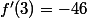 -f(3)}{h}=\lim\limits_{h\to 0} \frac{3h+46}{h-1}=-46)