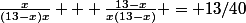 x} + \frac{x-13}{x(x-13)} = 13/40)