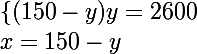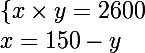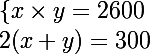2) Un terrain rectangulaire a une aire de 2600m² et un périmètre de 300m². Si x est la longueur de ce terrain et y sa largeur, exprimer les données de ce problème par un système d'equations. En utilisant la substitution, résoudre ce système puis donner les dimensions de ce terrain