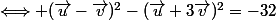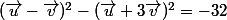 (u-v)^2 - (u+3v)^2 = et on développe = on fait plein de calcul = 32 et c'est tout.