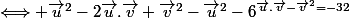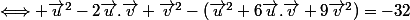 je me suis trompé car je n'avais pas lu que u et v sont orthogonaux donc tu tombes sur -8v²