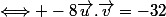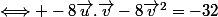 Attention tu confonds vecteur et norme de vecteur : -8.u.v=-8.0=0 et non pas -8*1*2!!
