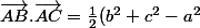 ^2=\frac19(c^2+b^2+2\vec{AB}. \vec{AC}))
