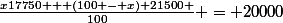 [17750 + 2150000 - 21 500x] / 100 = 20000
