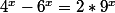 re, pour moi c'est ce qui me paraît le plus evident j'ai regarder le terme 4^x=(2^x)²=2^x.2^x et le terme 2.9^x=2.(3^x)²=2.3^x.3^x et j'ai essayé de trouver un produit en factorisant d'une part 2^x et 3^x à un signe près