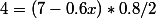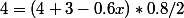 Bon alors maintenant, AM = x il faut trouver x pour que Aire CAMP = 4 donc il faut que 4 soit égal à (4+3-0.6x)*0.8/2 donc en fait, on résoud l'équation 4 = (4+3-0.6x)*0.8/2 ??