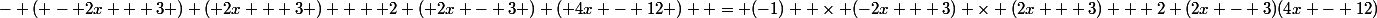 ( 2x + 3 ) + 2 ( 2x - 3 ) ( 4x - 12 ) = (-1) \times (-2x + 3) \times (2x + 3) + 2 (2x - 3)(4x - 12))