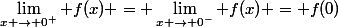 = \lim_{x \rightarrow 0^-} f(x) = f(0))