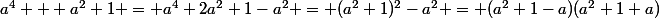 ^2-a^2 = (a^2+1-a)(a^2+1+a))
